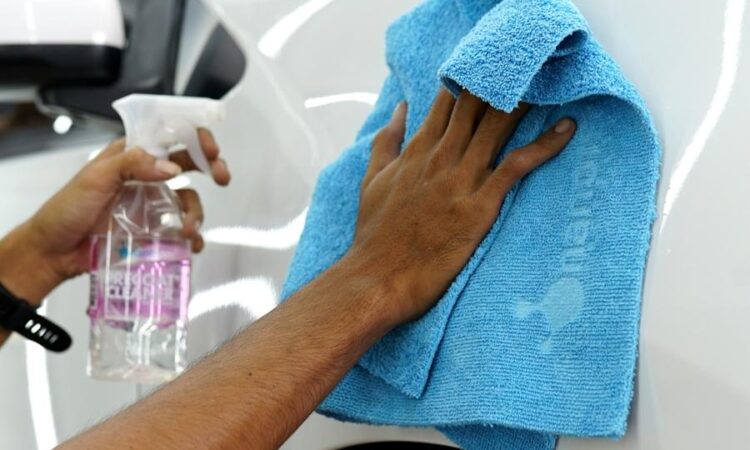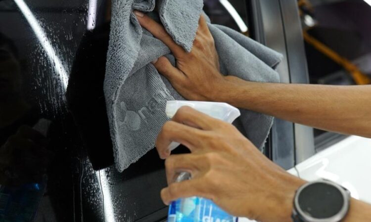 - Buffing – Proses memoles lapisan pelindung (wax/coating) agar menyatu sempurna dengan permukaan cat.