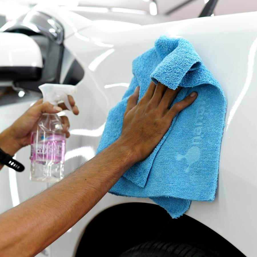 - Buffing – Proses memoles lapisan pelindung (wax/coating) agar menyatu sempurna dengan permukaan cat.