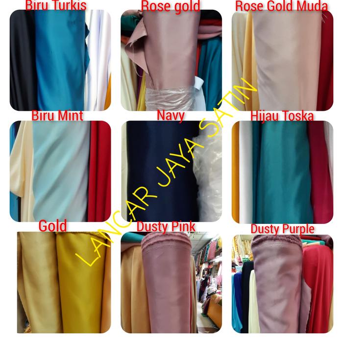 - Satin Bridal Dutches: Jenis kain satin yang memiliki karakteristik tebal, berat, dan sangat halus pada permukaannya. Sering digunakan untuk gaun pengantin dan busana formal karena kesan mewah dan fallnya yang baik.