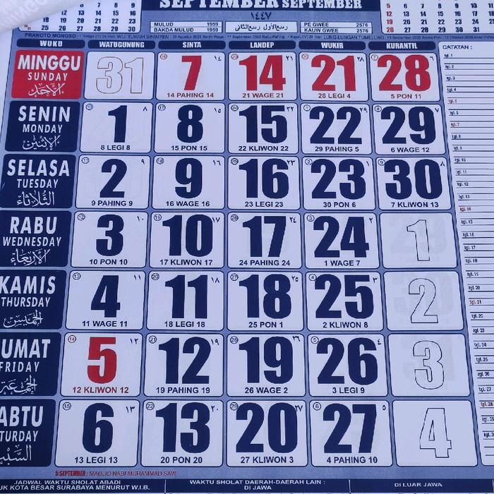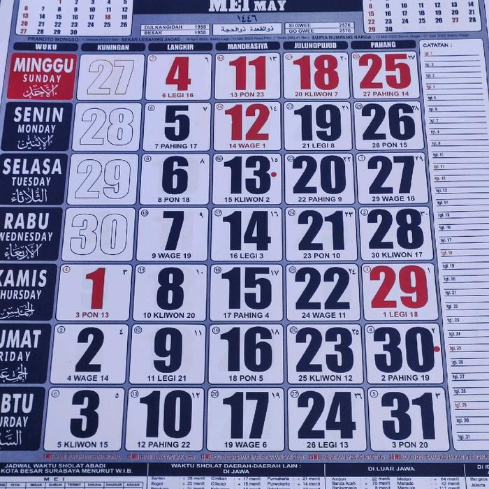| Tanggal Jawa | Mencantumkan penanggalan Jawa (Pon, Kliwon, Wage, Legi). |
