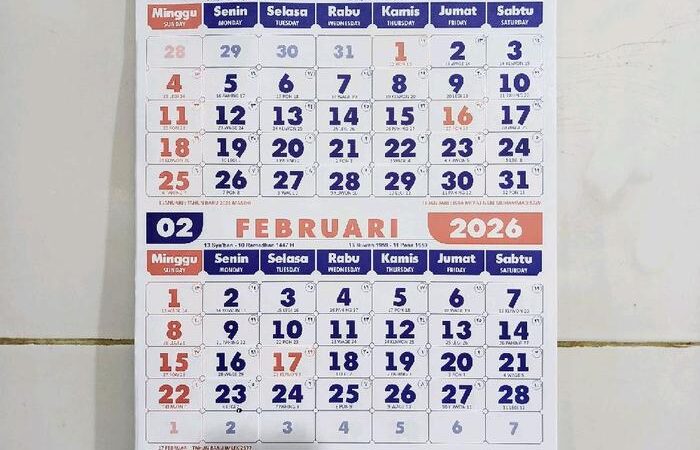 | Jumlah Lembar | 6 Lembar (Mencakup seluruh tahun 2026) |