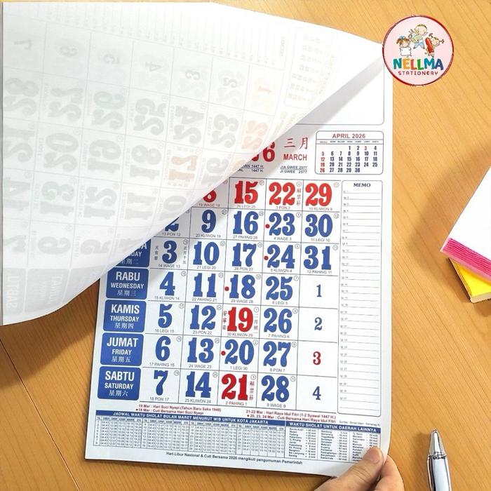 | Desain | Menampilkan angka tahun 2026 besar berwarna biru pada setiap lembar untuk penanda tanggal yang jelas dan mudah dikenali. |