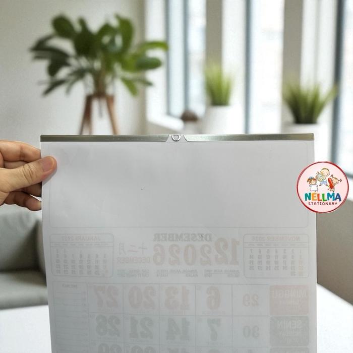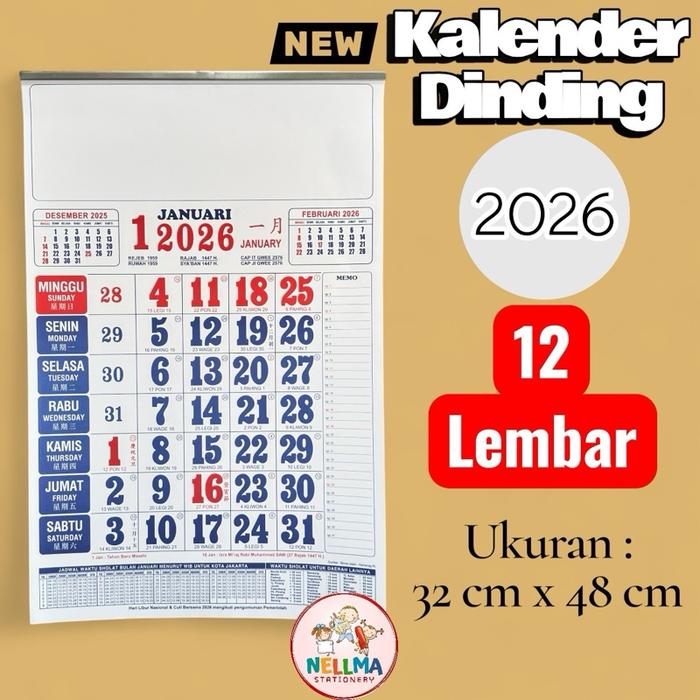 | Ukuran & Format | Kalender dinding 12 lembar berukuran medium 32 cm x 48 cm, memberikan visibilitas tinggi dari jarak jauh. |