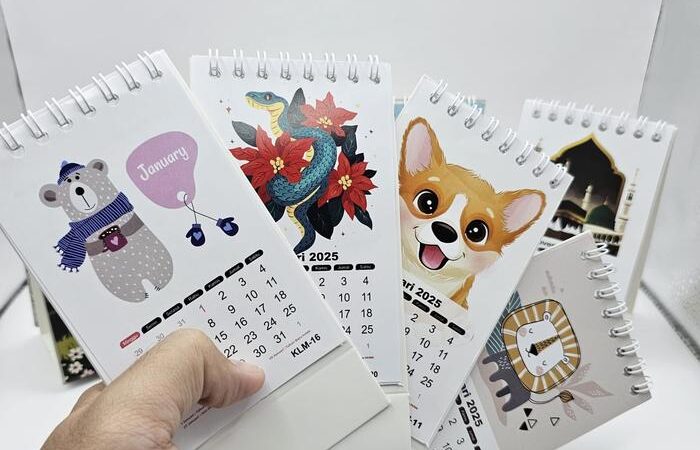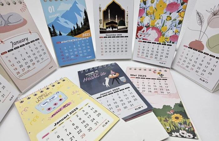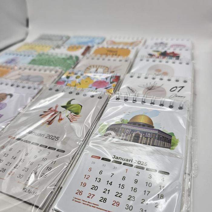 - Spiral kawat: Sistem pengikat lembaran kalender dengan kawat melingkar, memudahkan pembalikan halaman.
