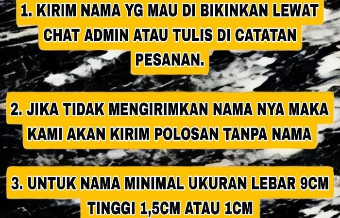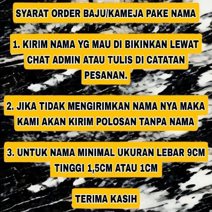 Dapatkan juga bonus bordir nama GRATIS dengan mencantumkan nama yang diinginkan pada catatan pemesanan. Untuk proses pengiriman yang lebih aman dan cepat, disarankan untuk tidak menggunakan metode pembayaran COD.