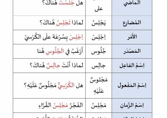 - Tasrif: Bentuk konjugasi kata kerja berdasarkan waktu, subjek, dan objek.