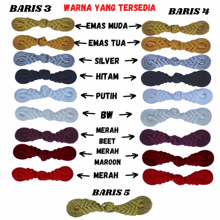 | Penggunaan | Cocok untuk baju Cheongsam, atasan bernuansa oriental, atau variasi tempelan pada sarung dan kantong. |
