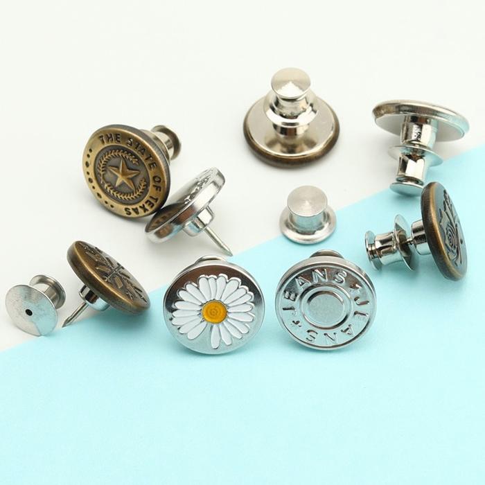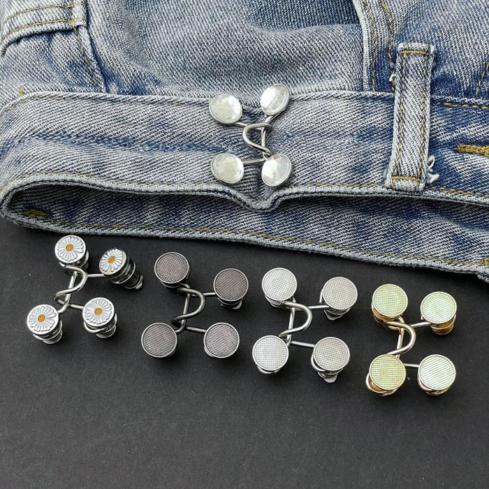 Kancing jeans ini dirancang khusus untuk mengencangkan celana yang terlalu longgar di bagian pinggang. Terdiri dari 4 kancing dekoratif dan 2 kait pengencang yang saling mengunci, memberikan tampilan rapi dan stylish seperti kancing jeans asli. Pemasangannya sangat mudah – cukup jepitkan pada kedua sisi celana dan kaitkan tanpa perlu alat khusus. Dapat dilepas dan dipasang kembali sesuai kebutuhan.