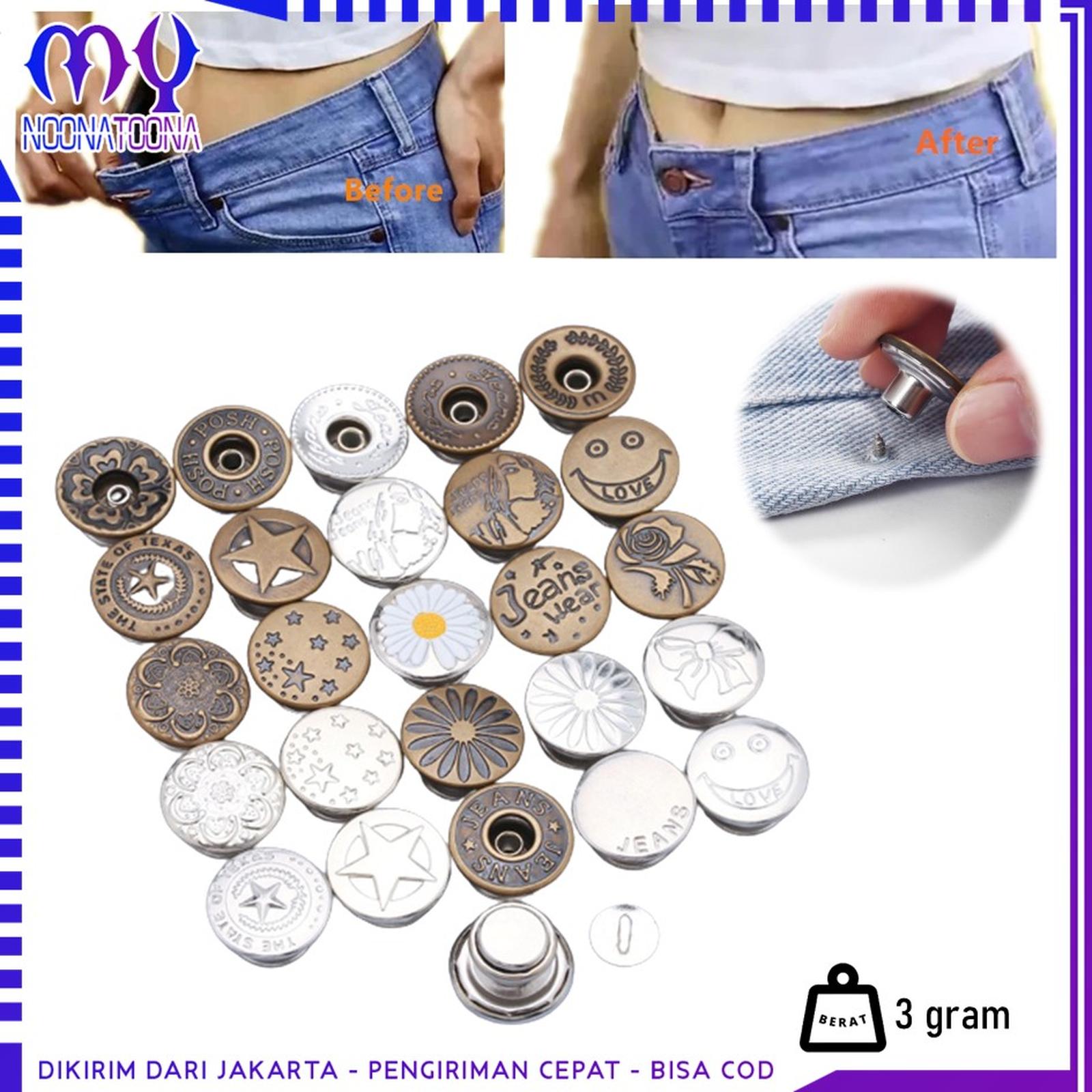 Tampilkan gaya terbaik Anda dengan kancing jeans berkualitas tinggi dari My Noona Toona. Kancing logam tusuk ini dirancang untuk memberikan kenyamanan maksimal dan tampilan yang rapi pada pakaian Anda.