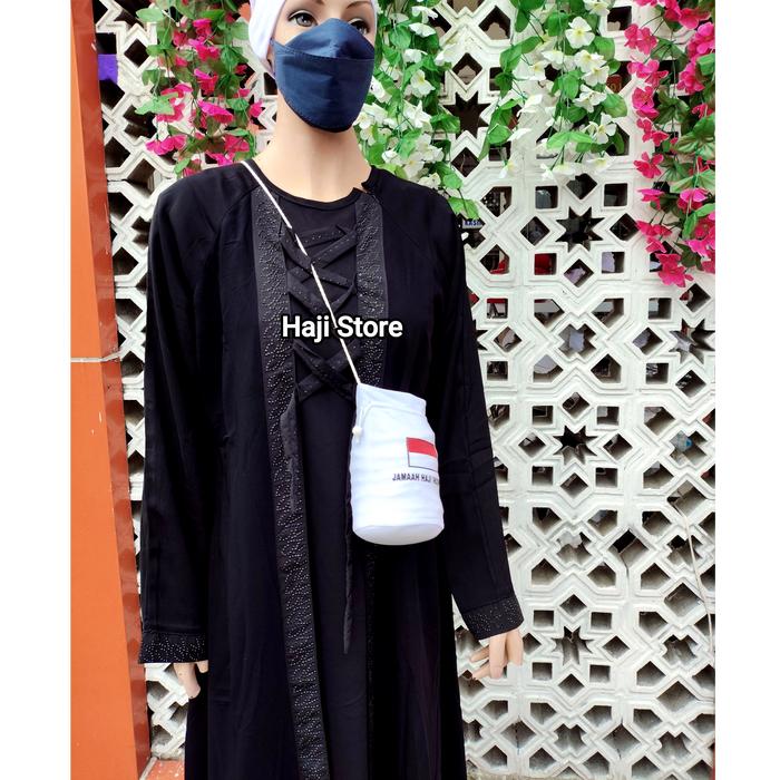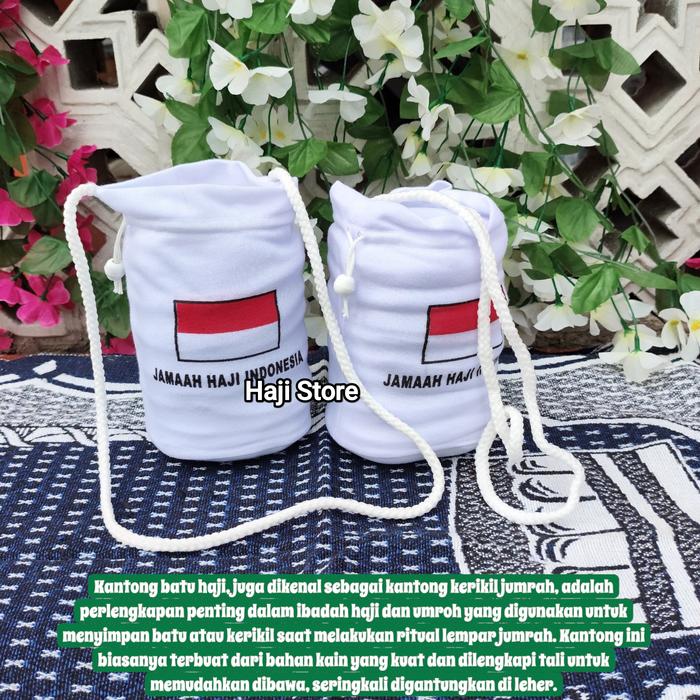 | Fitur | – Tali serut untuk mengencangkan kantong – Logo resmi Jamah Haji Indonesia |