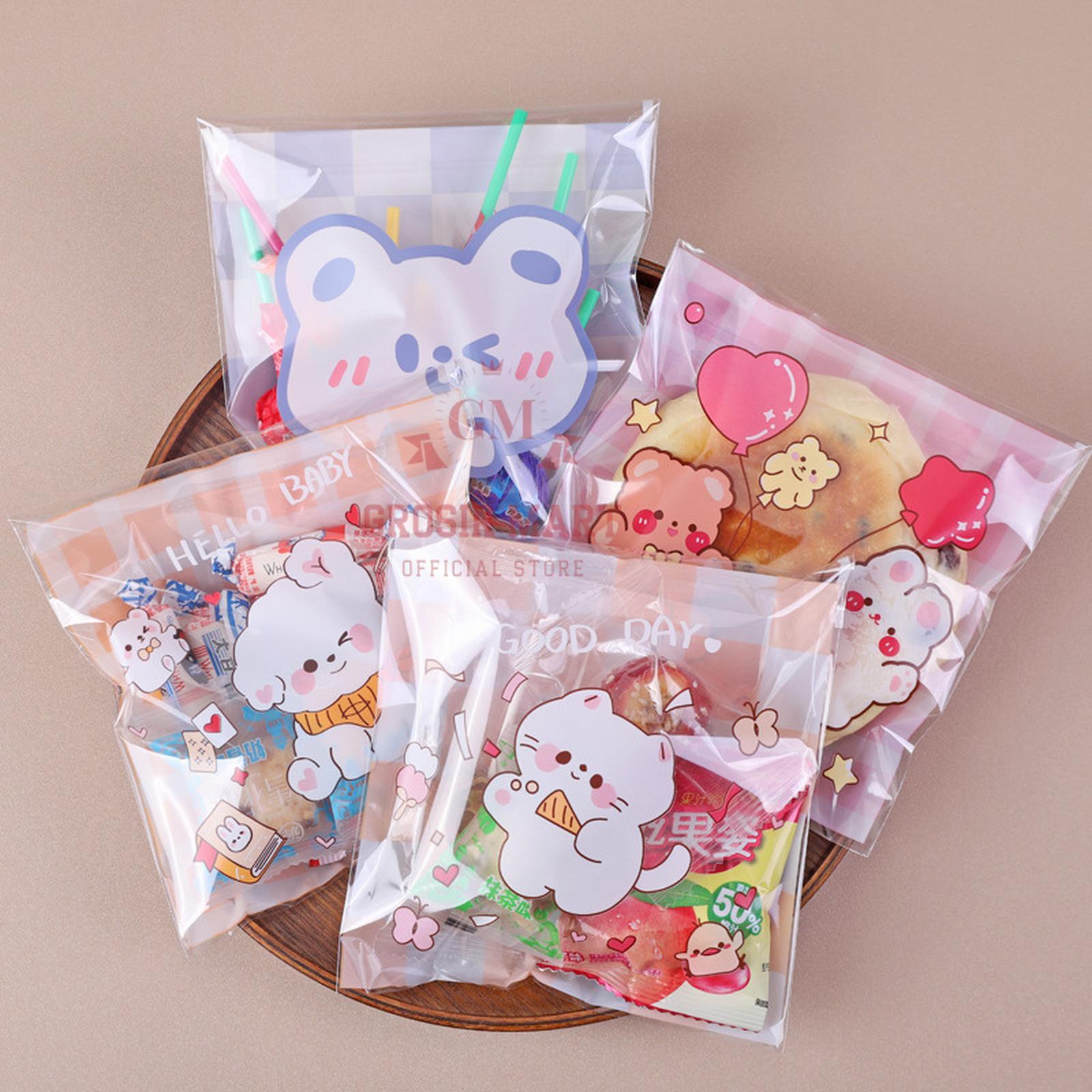 Kantong plastik OPP dengan beragam karakter imut ini sangat praktis dan sudah memiliki strip perekat. Bahan OPP yang digunakan telah tersertifikasi FOOD GRADE, sehingga sangat aman untuk mengemas langsung berbagai makanan kering seperti kue kering, donat, roti, permen, dan snack agar tetap renyah dan terlindungi. Tidak hanya untuk makanan, kantong ini juga sangat cocok untuk mengemas souvenir, aksesoris, bros, kancing baju, atau sebagai goodie bag dalam berbagai acara seperti ulang tahun, pernikahan, dan pesta.