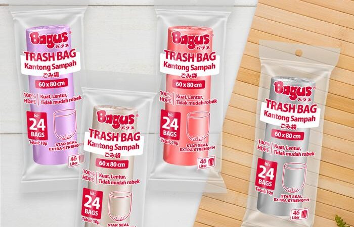 Keunggulan utama Kantong Sampah Bagus adalah teknologi seal berbentuk bintang yang memberikan kekuatan ekstra, mampu menampung beban hingga 46 liter tanpa khawatir bocor atau roboh. Tersedia dalam empat pilihan warna elegan—Silver, Gold, Red Velvet, dan Lavender—untuk memudahkan pemilahan sampah berdasarkan kategori.