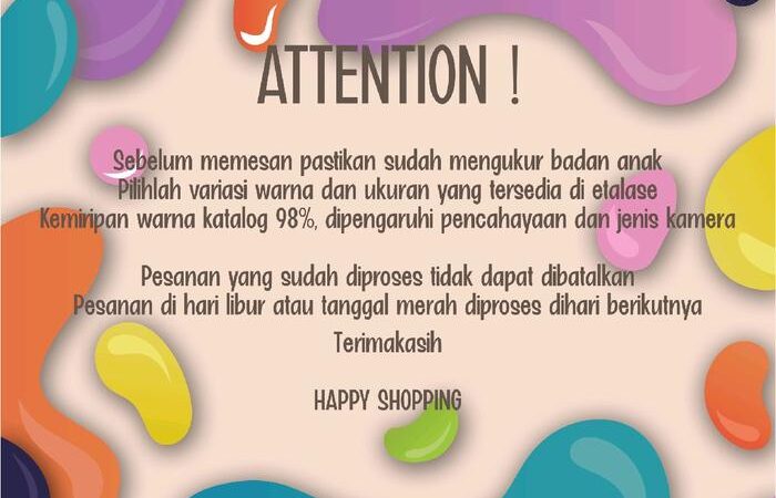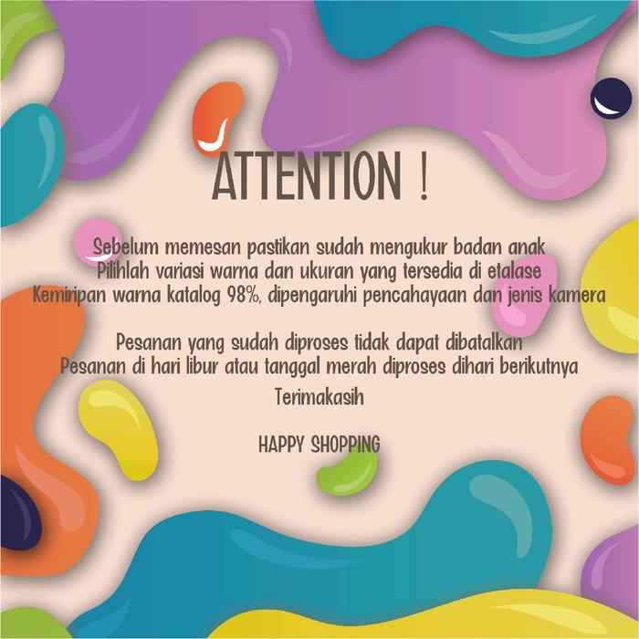 - Sangat disarankan untuk mengukur badan anak Anda sebelum memesan. Usia bukanlah patokan utama karena ukuran anak dapat bervariasi.