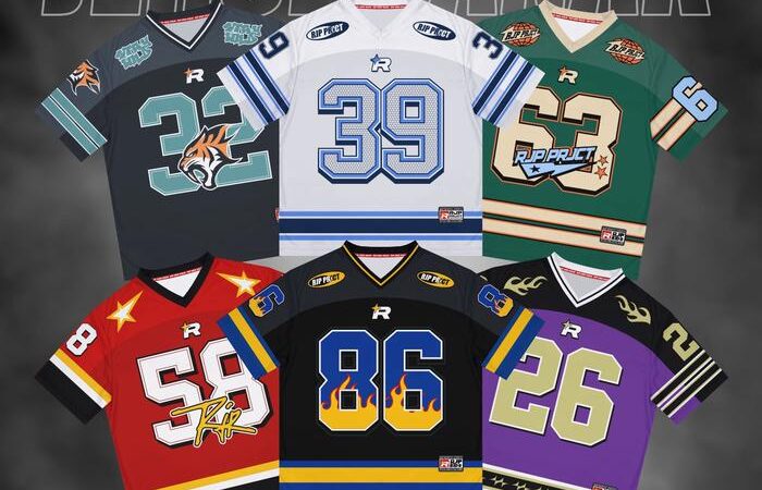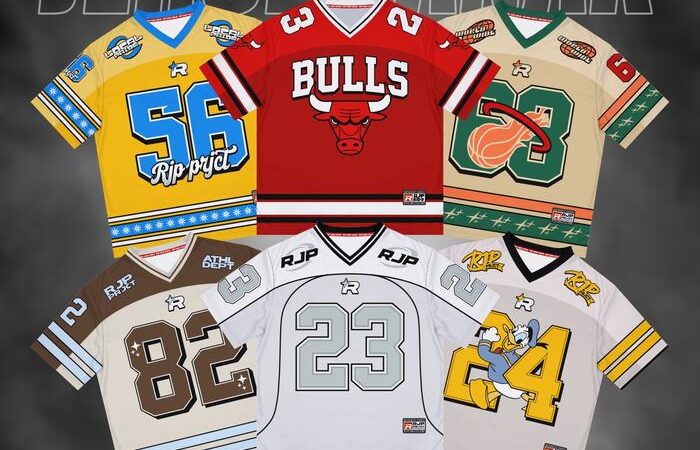 | Variasi | Tersedia desain angka, karakter, NFL vintage, dan rugby retro. |