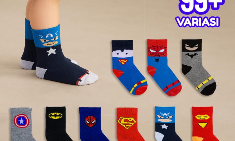 Motif & DesainTersedia banyak varian motif superhero Marvel yang menarik dan lucu. Setiap kemasan berisi 1 pasang kaos kaki.