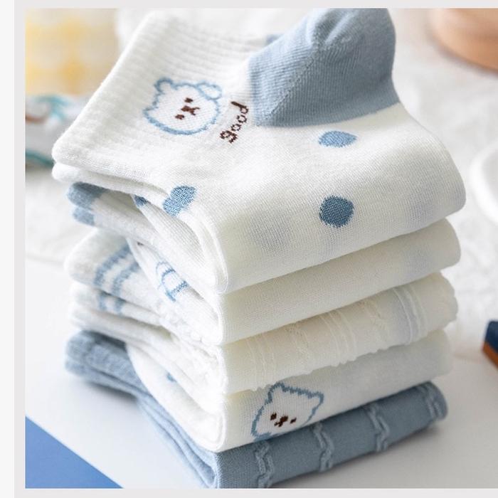 | Motif & Warna | Desain beruang biru-putih dengan garis ala Korea, lucu dan trendy |