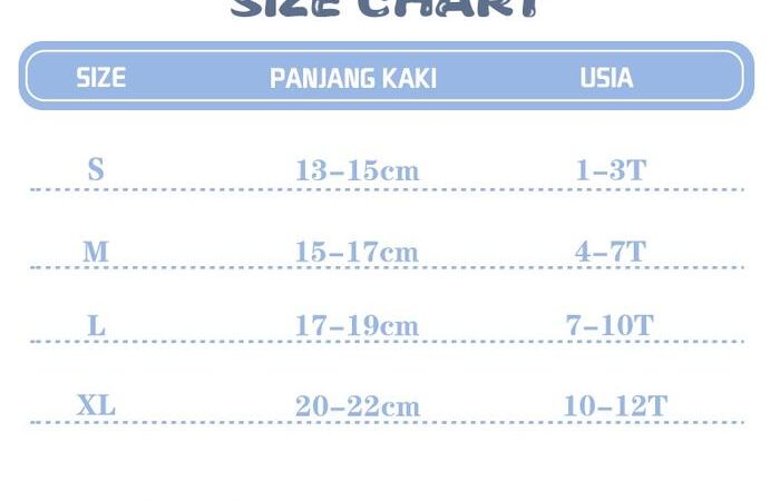 Tersedia dalam berbagai ukuran untuk menemani tumbuh kembang anak Anda, mulai dari bayi hingga usia 12 tahun. Pastikan untuk memilih ukuran yang tepat dengan mengacu pada panjang kaki si kecil, bukan hanya pada usia.