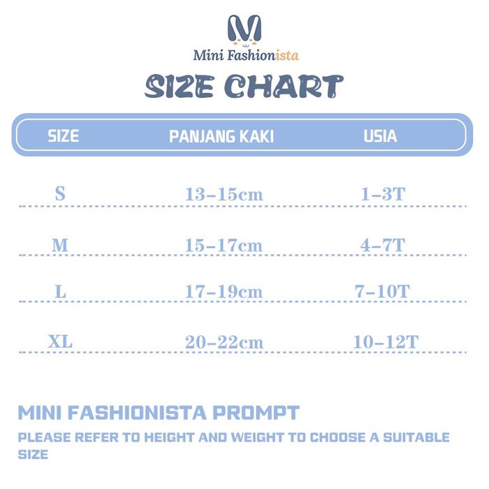 Tersedia dalam berbagai ukuran untuk menemani tumbuh kembang anak Anda, mulai dari bayi hingga usia 12 tahun. Pastikan untuk memilih ukuran yang tepat dengan mengacu pada panjang kaki si kecil, bukan hanya pada usia.
