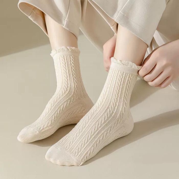 - Setengah Betis: Desain kaos kaki yang panjangnya hanya sampai setengah betis (mid-calf), tepatnya menutupi mata kaki dan sebagian betis.