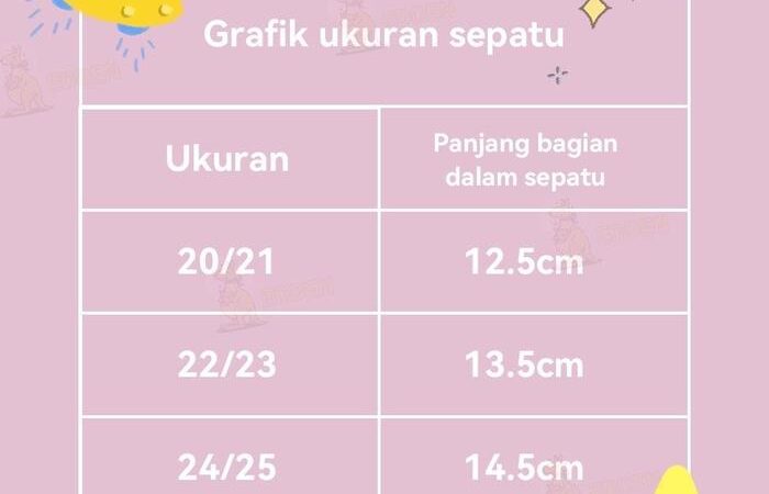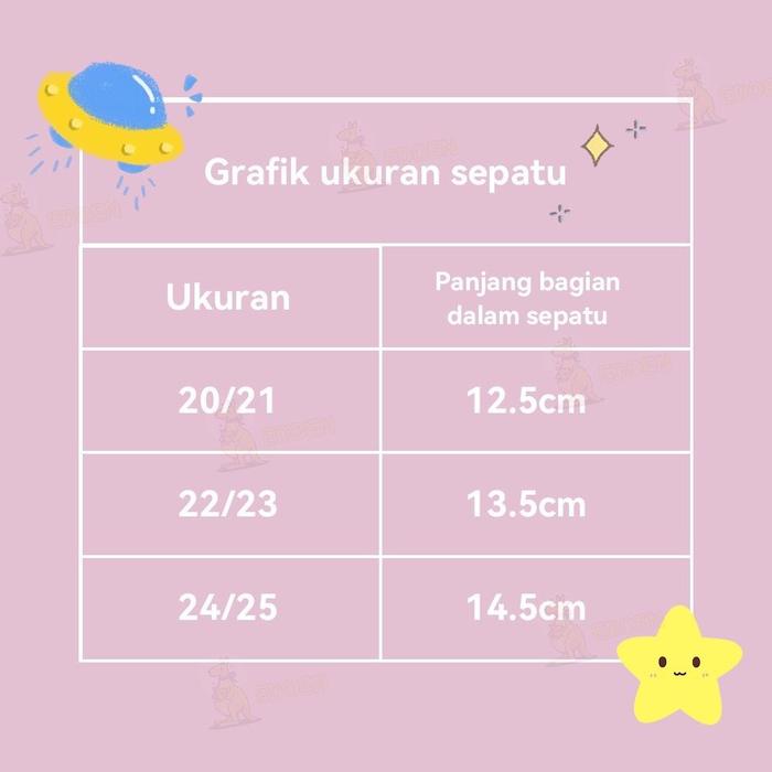 PENTING: Ukur panjang telapak kaki anak Anda dan cocokkan dengan panjang insole untuk memastikan ukuran yang pas. Usia bukan patokan utama.