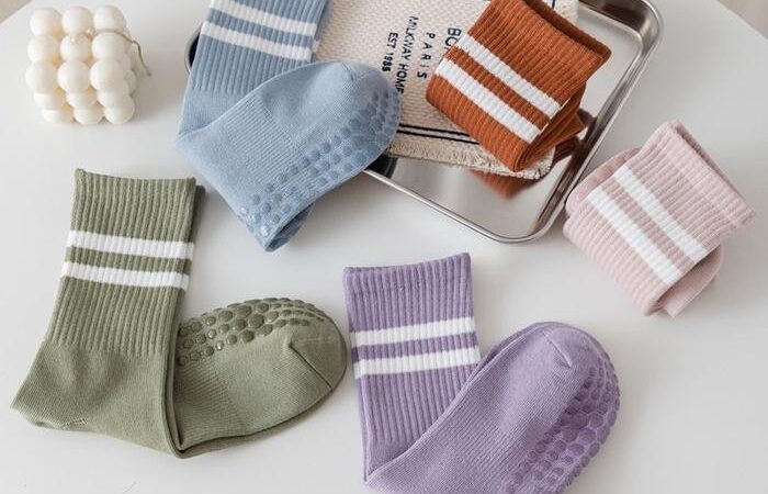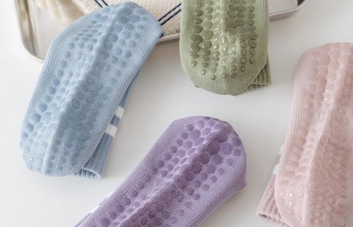 - Dot Grip: Pola berbentuk bulat (dot) yang terdapat pada sol kaos kaki, terbuat dari bahan khusus yang meningkatkan gesekan antara kaki dan permukaan matras, sehingga mencegah slip.
