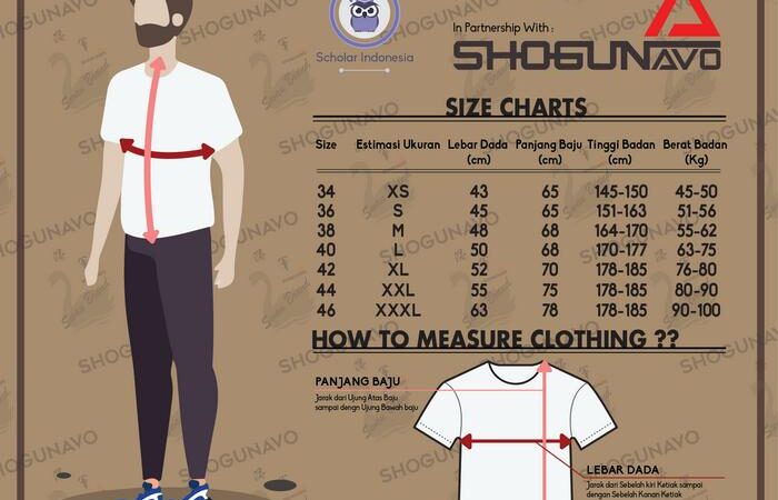| Ukuran | Label Size | Lebar Dada (cm) | Panjang Baju (cm) |