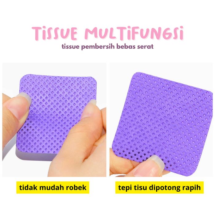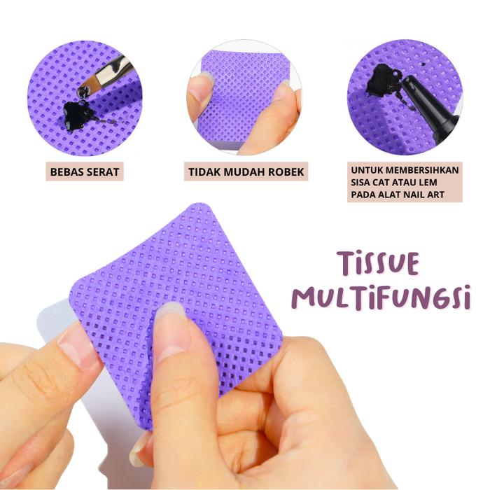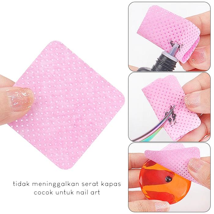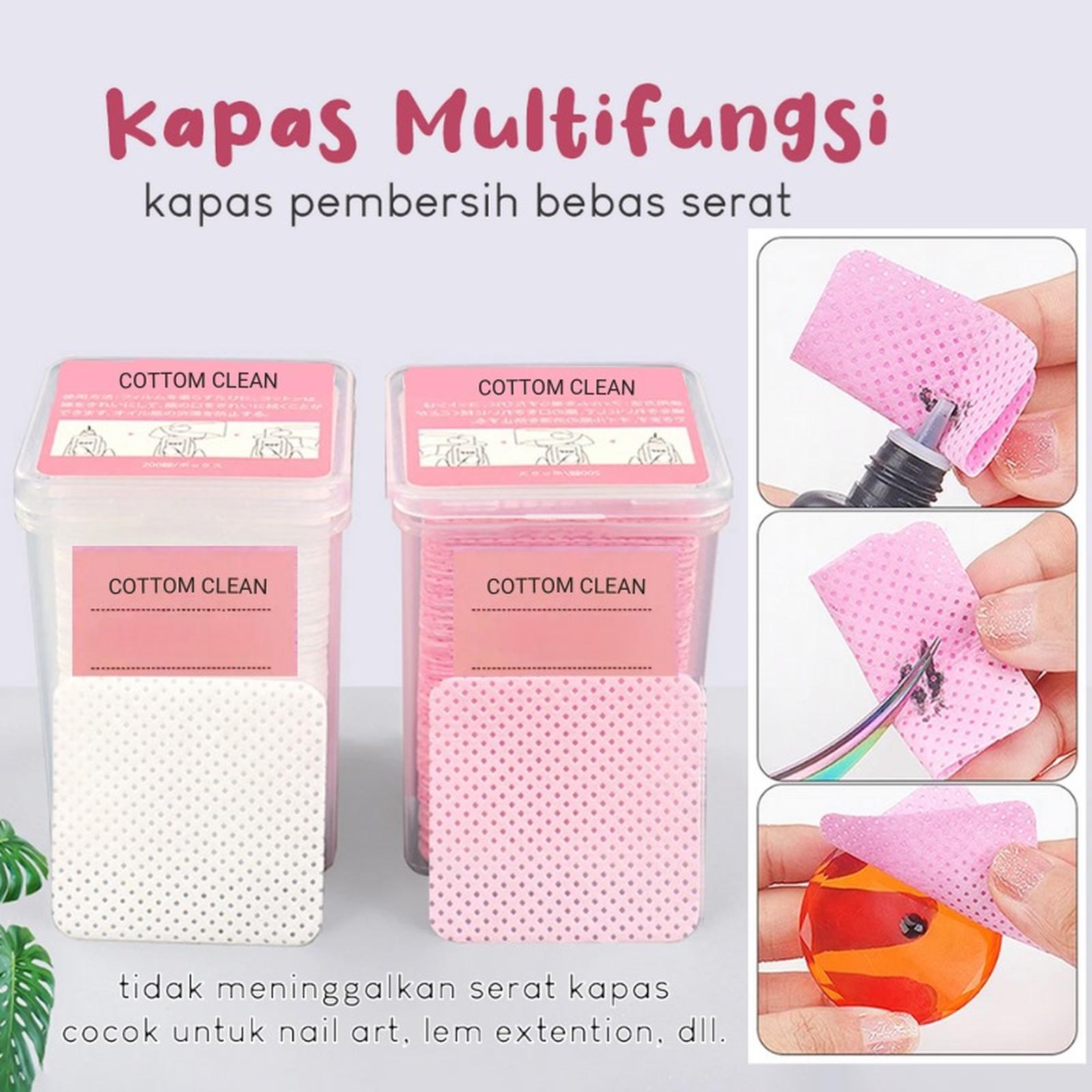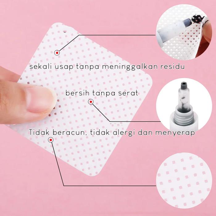 | Ukuran Kapas: 4.8×4.8 cm | Multifungsi: Membersihkan sisa lem extension, cat kuku gel, dan peralatan. |