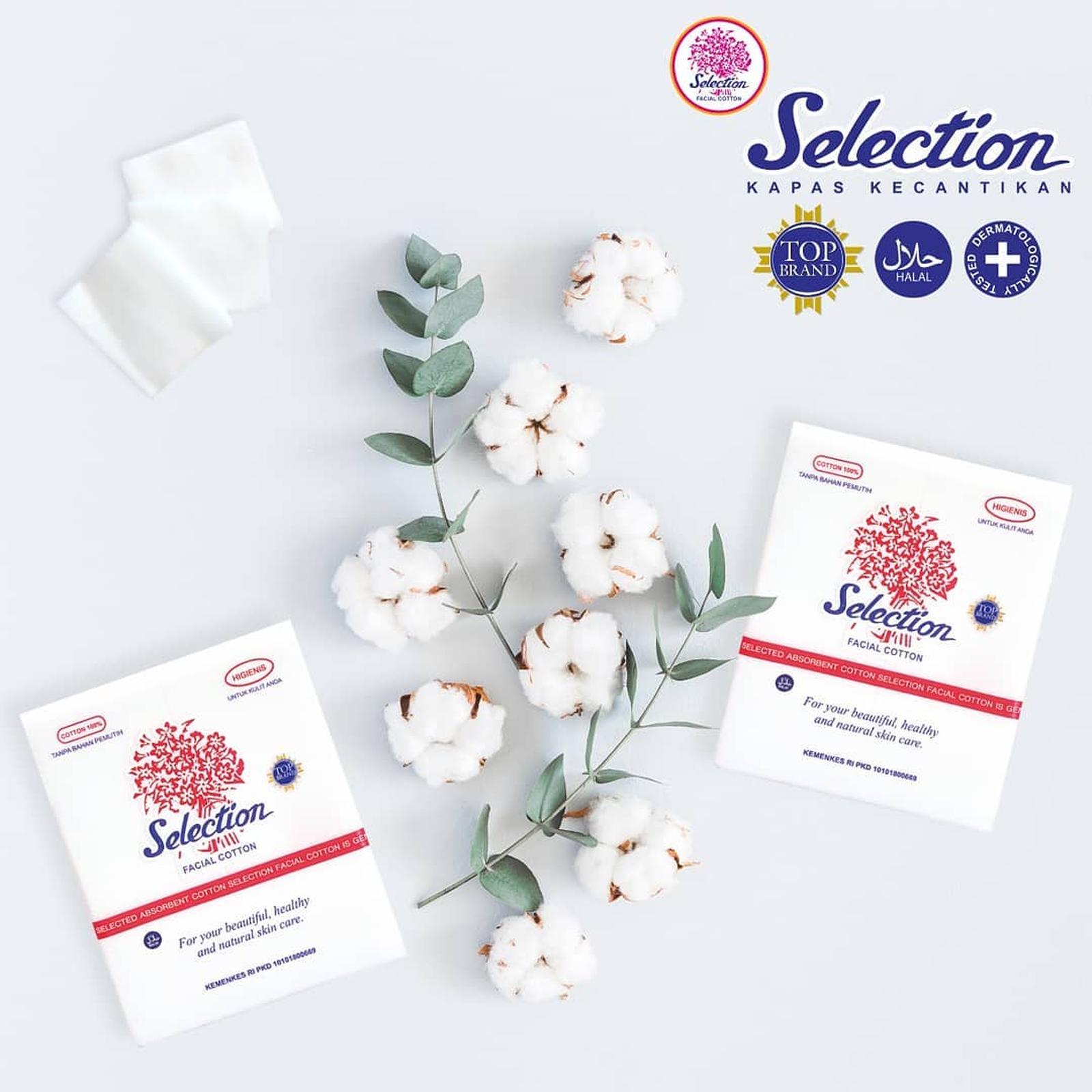 Kapas Selection adalah pilihan utama untuk kebutuhan kecantikan dan perawatan kulit harian Anda. Terbuat dari 100% kapas alami pilihan, setiap helai seratnya sangat lembut dan tidak akan meninggalkan serat pada wajah. Produk ini sangat efektif untuk mengaplikasikan toner, menghapus makeup, serta meratakan cleansing milk atau micellar water.