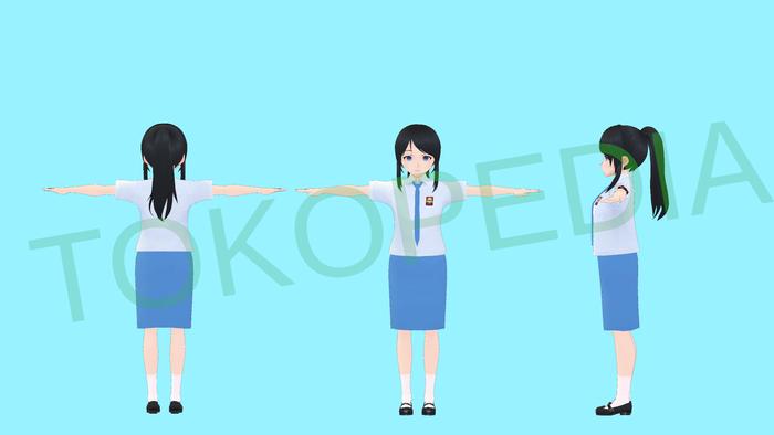| Base Karakter | Model 3D utuh termasuk rigging, rambut, pakaian, sepatu, 6 ekspresi dasar (netral, marah, sedih, senang, terkejut), mulut yang bergerak saat berbicara, dan file VRM. |