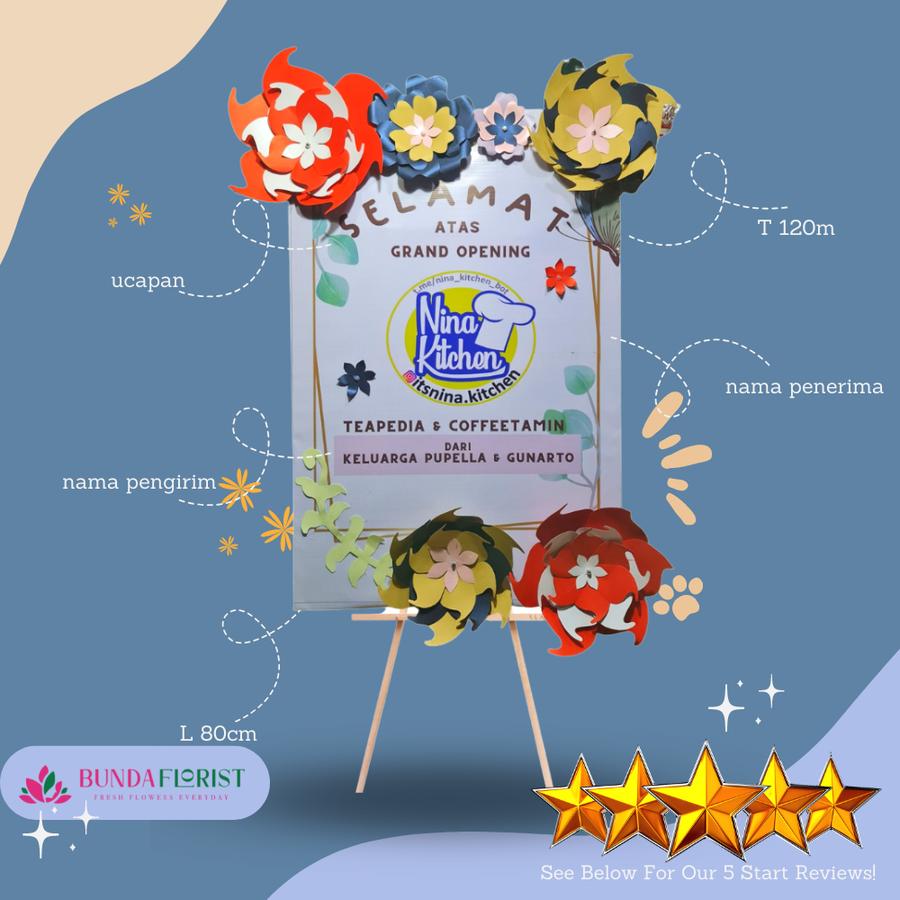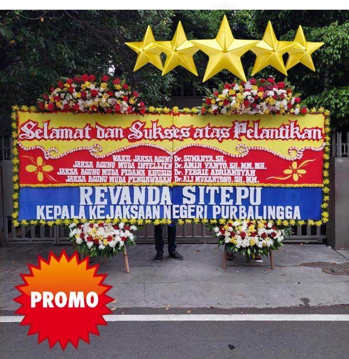 - Bunga papan promo: model random, warna disesuaikan tema (duka: gelap/selamat: terang).