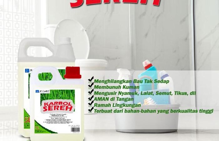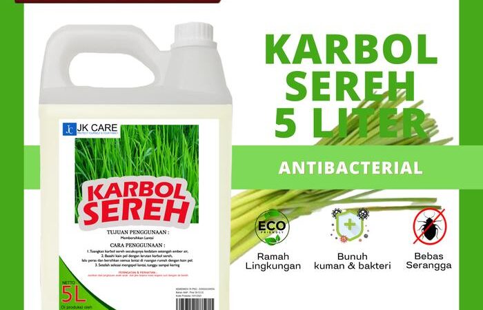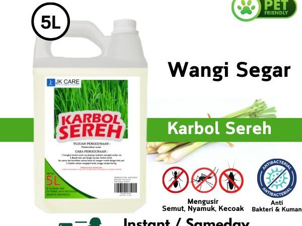 JKCARE Karbol Sereh adalah solusi lengkap untuk kebersihan rumah Anda. Dibuat dengan ekstrak minyak sereh (citronella) alami, produk ini tidak hanya membersihkan lantai secara mendalam tetapi juga membunuh 99% kuman dan bakteri. Aromanya yang segar dan tahan lama efektif menghilangkan bau tak sedap dari kamar mandi, dapur, hingga kandang hewan. Sebagai pengusir serangga alami, aroma serehnya tidak disukai nyamuk, semut, lalat, dan kecoa sehingga rumah Anda terlindungi. Formulanya yang eco-friendly aman untuk kulit keluarga dan hewan peliharaan, serta tidak meninggalkan lantai licin. Terbukti digunakan oleh berbagai hotel, restoran, dan rumah tangga modern.