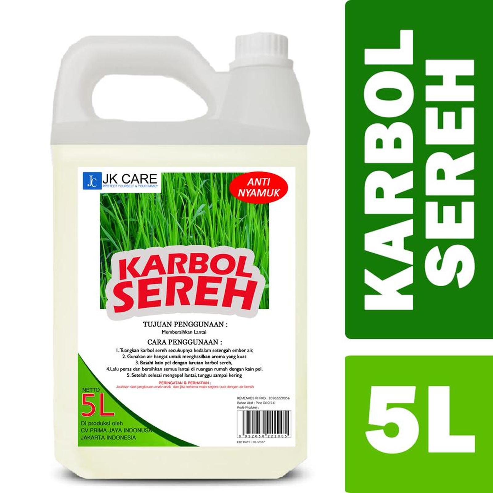 JKCARE Karbol Sereh adalah solusi lengkap untuk kebersihan rumah Anda. Dibuat dengan ekstrak minyak sereh (citronella) alami, produk ini tidak hanya membersihkan lantai secara mendalam tetapi juga membunuh 99% kuman dan bakteri. Aromanya yang segar dan tahan lama efektif menghilangkan bau tak sedap dari kamar mandi, dapur, hingga kandang hewan. Sebagai pengusir serangga alami, aroma serehnya tidak disukai nyamuk, semut, lalat, dan kecoa sehingga rumah Anda terlindungi. Formulanya yang eco-friendly aman untuk kulit keluarga dan hewan peliharaan, serta tidak meninggalkan lantai licin. Terbukti digunakan oleh berbagai hotel, restoran, dan rumah tangga modern.