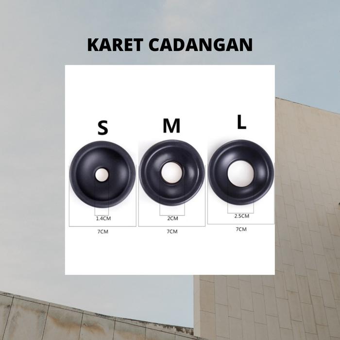 | Ukuran Tersedia | S (Diameter lubang tengah 1.4 cm), M (2 cm), L (2.5 cm). |