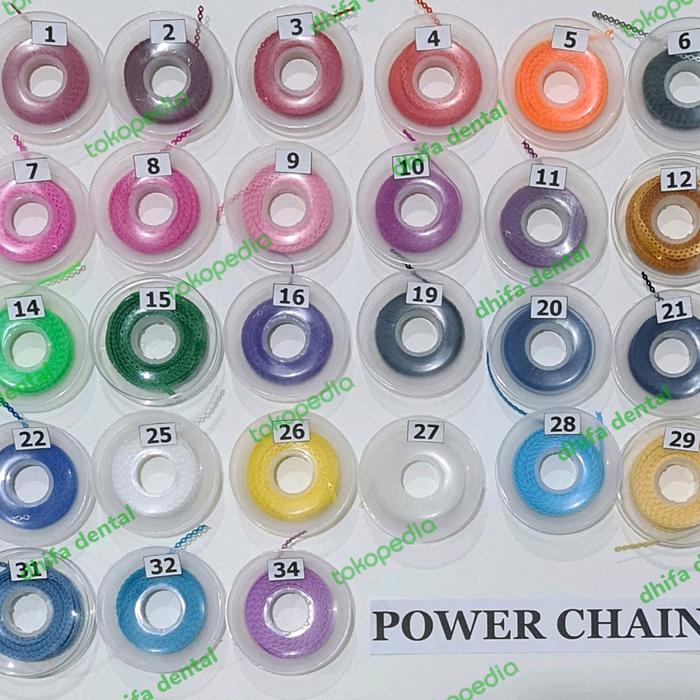 • Power Chain Ultra: Karet elastik khusus digunakan dalam perawatan gigi (ortodontik) untuk mengatur jarak atau posisi gigi.
