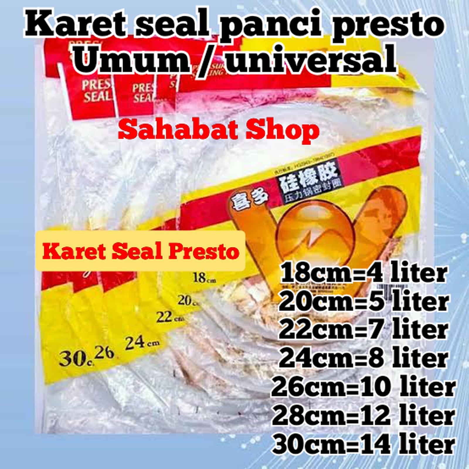 PENTING: Ukuran yang tercantum (18cm, 20cm, dst.) mengacu pada DIAMETER DALAM BODY panci presto Anda. Pastikan untuk mencocokkan ukuran berdasarkan diameter dalam panci atau kapasitas liternya untuk mendapatkan seal yang pas dan berfungsi optimal.