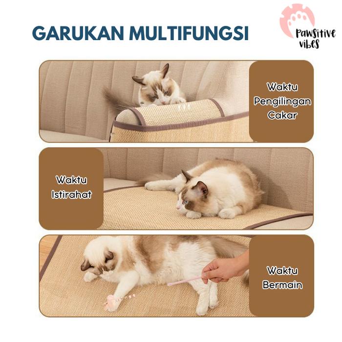 Hadirkan solusi terlengkap untuk memenuhi naluri mencakar kucing sekaligus melindungi perabotan favorit Anda. Karpet garukan ini terbuat dari bahan sisal alami yang sangat disukai kucing, aman, dan ramah lingkungan. Desainnya yang anti slip memberikan stabilitas maksimal, sehingga tidak mudah bergeser saat digunakan.