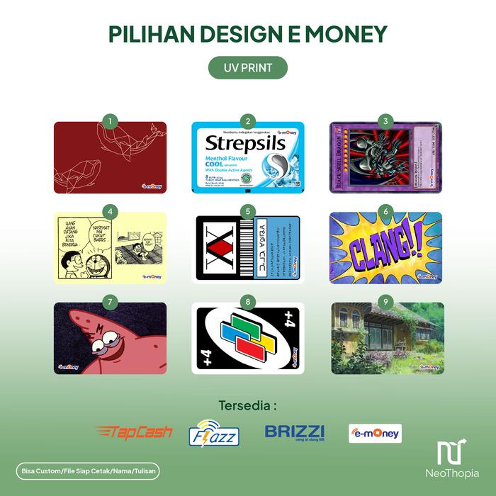 | Jenis Kartu | E-Money, BRIZZI, TAPCASH, Flazz Gen 1 (TANPA CHIP). Flazz BCA Gen 2 (ADA CHIP). |