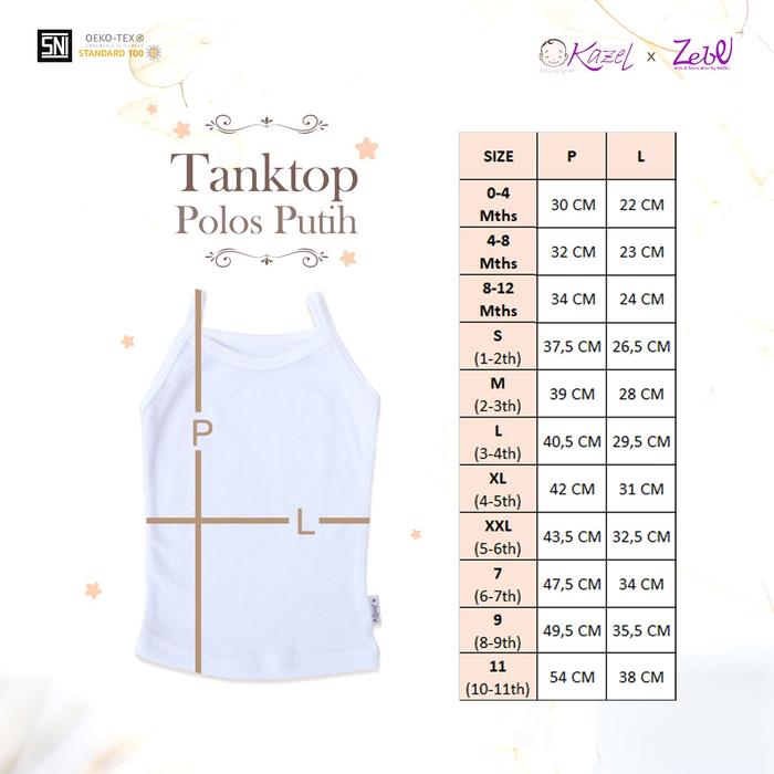 Hadirkan kenyamanan sempurna untuk si kecil dengan Kazel Tanktop Dalam Putih. Dirancang khusus untuk buah hati Bunda, tanktop ini menjadi pilihan ideal untuk dipakai sehari-hari maupun sebagai dalaman yang lembut. Terbuat dari bahan katun rib premium yang terkenal dengan sirkulasi udaranya yang baik, sehingga menjamin kulit anak tetap sejuk dan nyaman sepanjang hari, bebas dari iritasi.