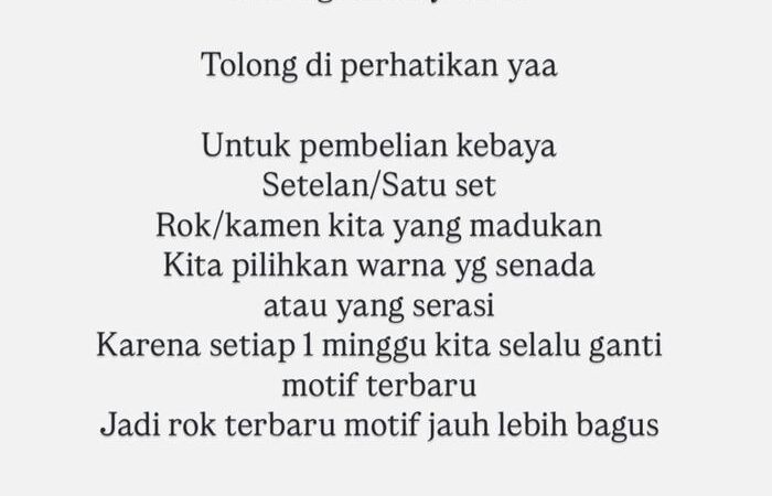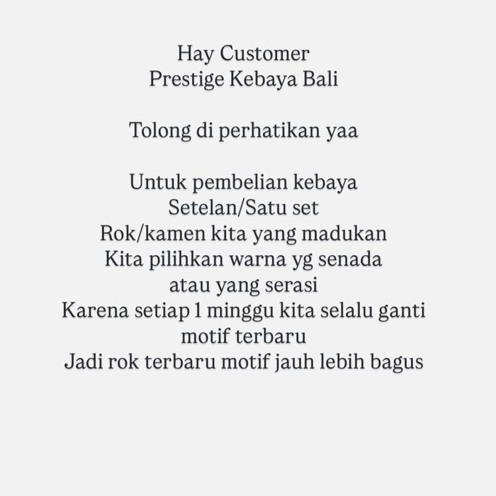 - Kebaya yang dikirim adalah real pict (sama seperti foto pada model/etalase).