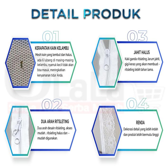 | Perawatan | Kain kelambu dapat dicuci untuk menjaga kebersihan |