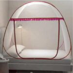 Dengan rangka baja yang fleksibel, kelambu ini dapat dipasang dengan cepat tanpa memerlukan tali tambahan. Setelah digunakan, kelambu dapat dilipat dengan mudah menjadi lingkaran kecil dan disimpan dalam tasnya, menghemat ruang.