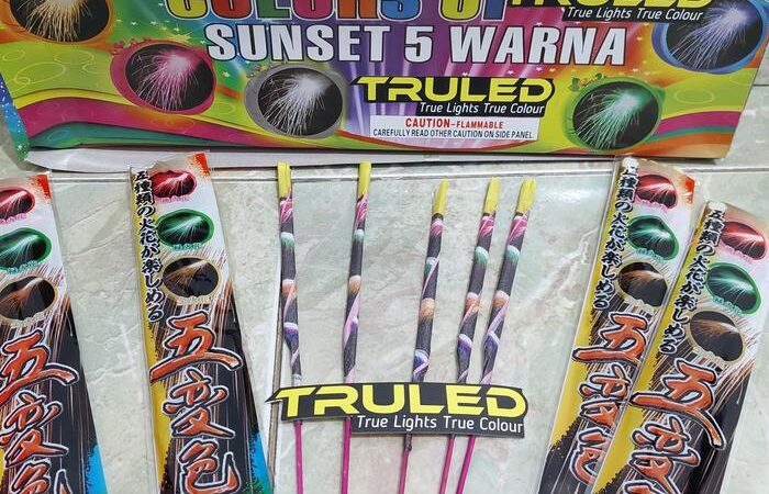 • Kembang Api Tulis / Lilin: Jenis kembang api yang berbentuk batang lurus seperti lilin, menghasilkan percikan api berwarna-warni ketika dinyalakan dan dapat digenggam di tangan.