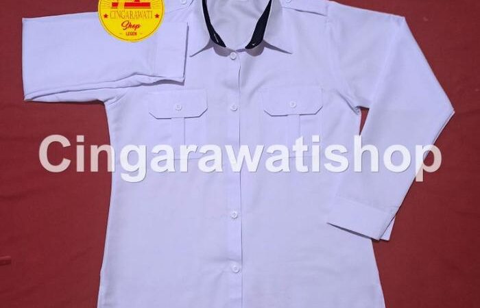 | Tampilan & Fungsi | Kemeja dinas putih dengan kerah hitam, elegan dan klasik, cocok untuk PNS wanita, perawat, atau profesi formal lainnya. Desain lengan panjang untuk kesan rapi dan profesional. |