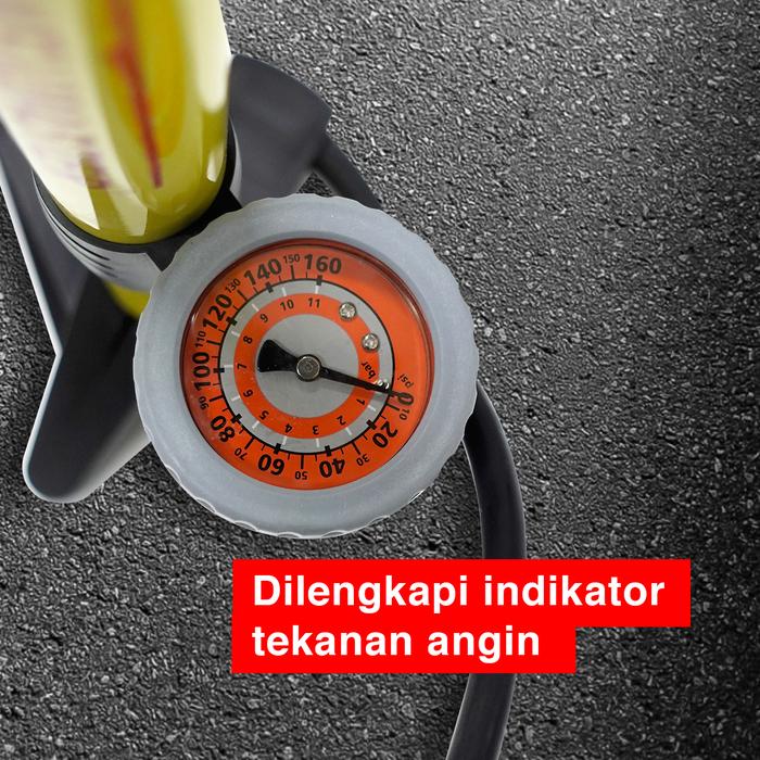 Dibuat dengan material berkualitas tinggi, pompa ini menjamin daya tahan dan performa optimal. Desainnya yang elegan dengan warna kuning metalik membuatnya tidak hanya fungsional tetapi juga stylish. Dilengkapi dengan selang sepanjang 1 meter, Anda dapat mengisi udara dengan lebih leluasa tanpa harus memindahkan posisi pompa.