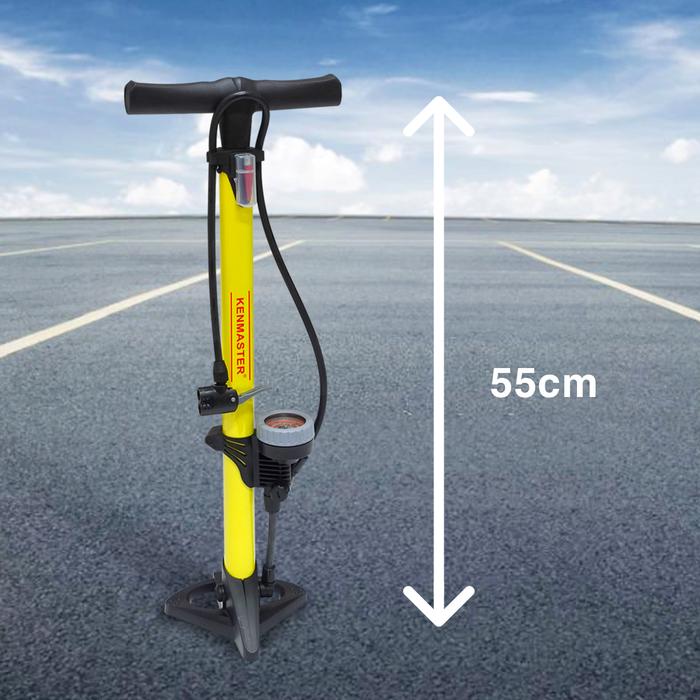 Dengan tinggi 55 cm, pompa ini stabil selama digunakan. Tekanan maksimum yang dihasilkan mencapai 120 Psi (8 Bar), cukup untuk memompa ban sepeda baik jenis presta maupun schrader hingga keras dengan cepat dan efisien.