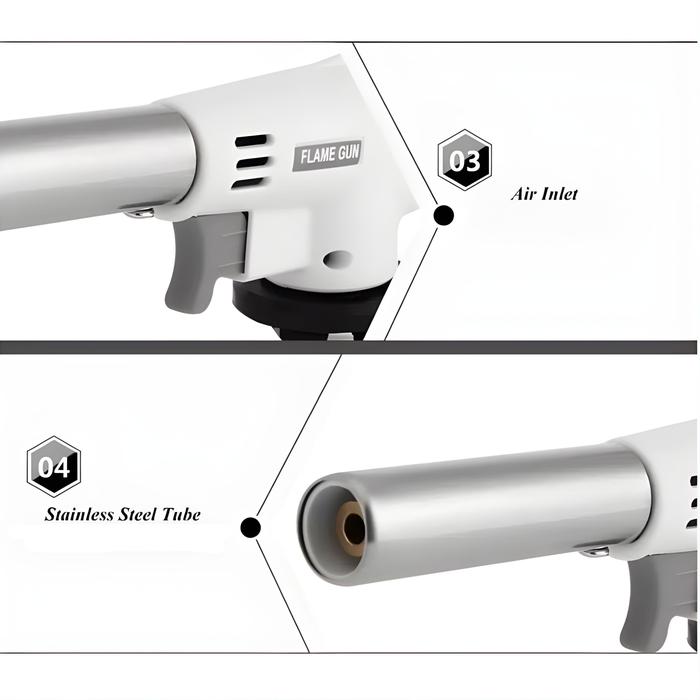 Alat ini dirancang untuk membakar, melelehkan, atau memanaskan suatu objek dengan presisi. Sangat cocok untuk berbagai keperluan seperti menyolder pipa, membersihkan kabel, mematangkan makanan dengan teknik torch (seperti crème brûlée), hingga keperluan perkemahan seperti menyalakan arang atau kayu bakar. Desainnya yang portabel memudahkan Anda untuk menyimpan dan membawanya ke mana saja.