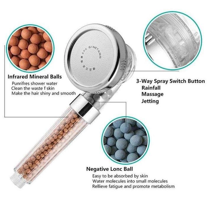 | Manfaat Kesehatan | Mengurangi klorin, logam berat, dan bakteri; mencegah kerontokan rambut; baik untuk kulit sensitif. |