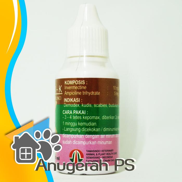 Solusi efektif dan praktis untuk mengatasi masalah scabies, kudis, dan parasit pada kelinci kesayangan Anda. Dengan formula khusus yang mengandung Ivermectin dan Ampicillin, Kepomax K bekerja membasmi tungau penyebab gatal (seperti Demodex), kutu, serta mengobati infeksi bakteri sekunder. Sangat cocok untuk mengobati budukan dan masalah kulit lainnya.