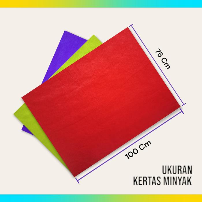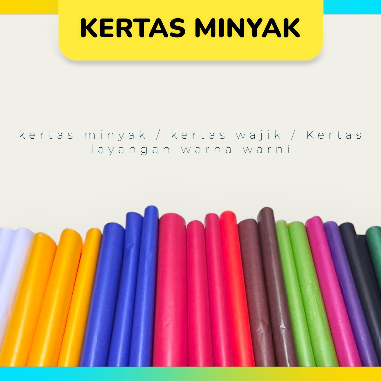 - Kertas Minyak / Kertas Wajik: Jenis kertas yang memiliki permukaan licin dan sedikit transparan, sering kali dilapisi lilin atau bahan kimia lainnya untuk membuatnya kedap air dan minyak. Kertas ini umum digunakan untuk membungkus makanan (seperti wajik, gemblong, atau gorengan), kerajinan tangan, serta alas untuk mencetak atau melukis.