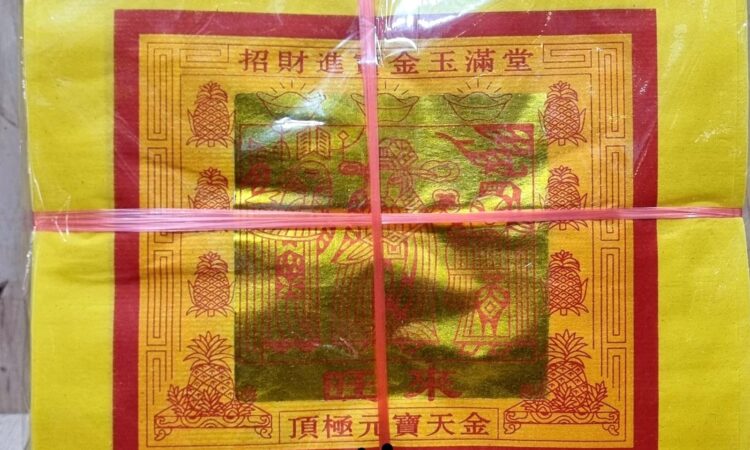 - Mok (Emas Tengah): Bagian tengah kertas sembahyang yang dilapisi foil berwarna keemasan atau perak. Mok merupakan elemen penting yang diyakini memiliki nilai spiritual dan simbolis tinggi.